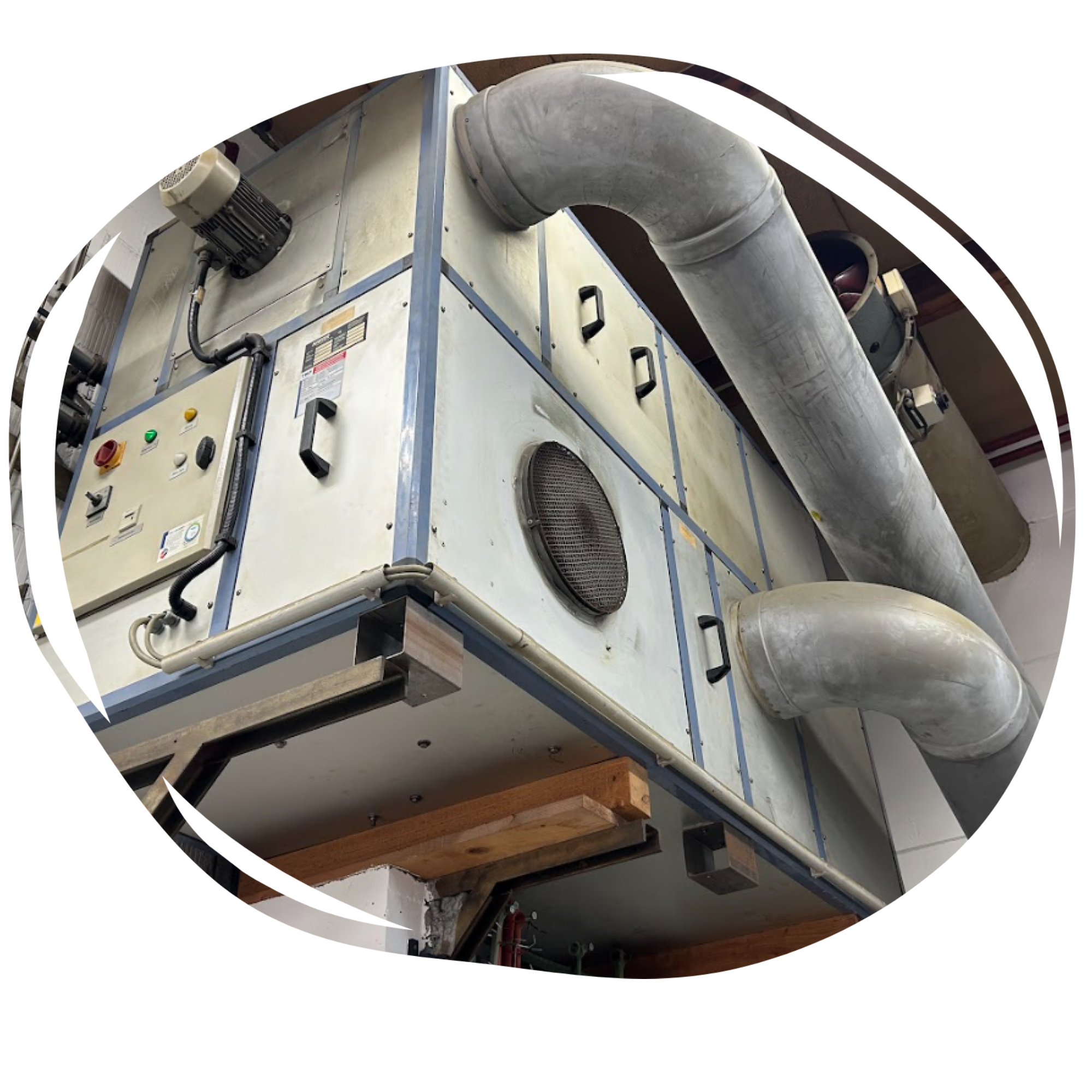 Die prozessgesteuerten Ab- und Zuluftanlagen in der Fabrikationshalle optimieren das Arbeitsklima. Bei kalten Aussentemparaturen wird die Zuluft mit der Abluft im Kreuztausch-Verfahren erwärmt und bei Bedarf mit oben aufgeführter Wärmerückgewinnungs-Energie nachgeheizt.